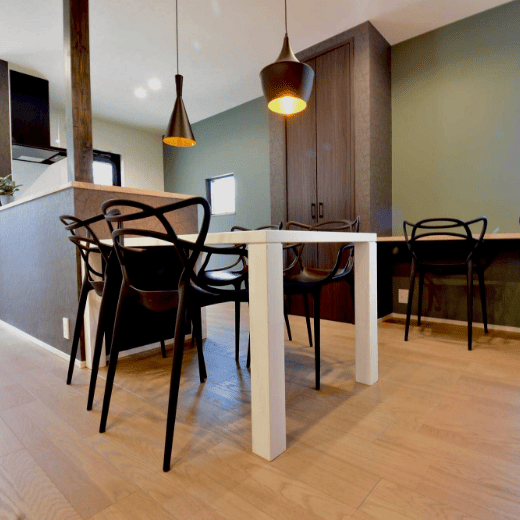 見学したときから+mineのヴィンテージ感シャビーシックの雰囲気がとても好きになり、「このテイストで家を建てたい」と強く思いました。 豊富な選択肢の中から自分たちの好みに合わせて選んでいくだけで、完成した家はイメージ通り、まさに“私たちらしい”空間になりました。 デザインだけでなく、実際に住んでみて驚いたのはその性能の高さです。 標準仕様なのに断熱性が素晴らしく、寒い冬の日もエアコン1台で家全体が十分に暖かく、快適に過ごせています。 デザインも性能も諦めたくない私たちにとって、+mineは最高の選択でした。