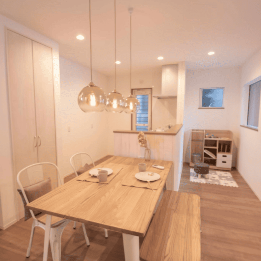 揺れる灯りと木の温もり。家族の会話が弾む、カフェのようなダイニング。