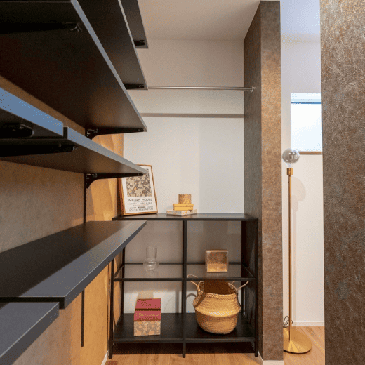 「隠す」から「魅せる」へ。黒い棚と質感が空間を引き締める、大人の収納。