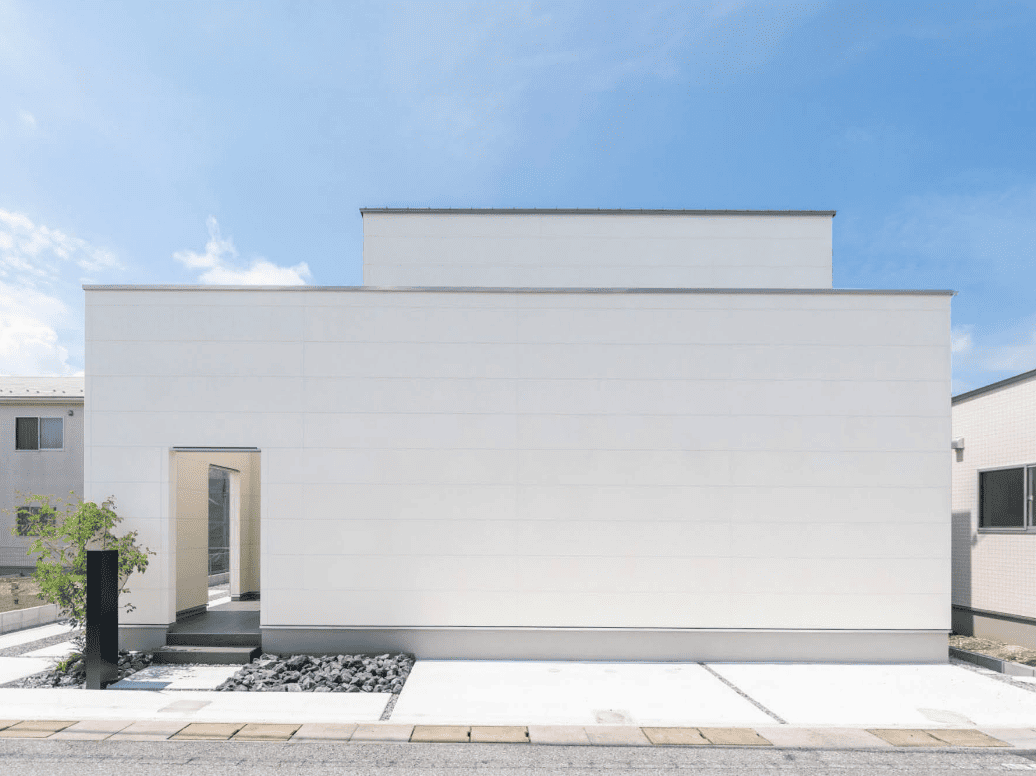 外観は異素材が響き合う、洗練されたスクエアフォルム。室内に入ると、