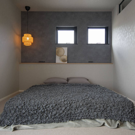 生活感を抑えたモダンな和室は、客間やお子様の遊び場としても活躍。寝室は柔らかな光に包まれ、一日の疲れをリセットする安らぎの空間に仕上げました。