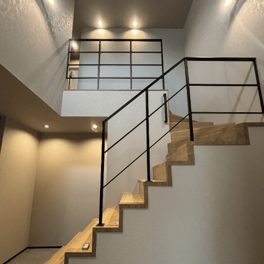 家の顔だからこだわりたい。アイアンのラインがゲストを魅了する、自慢の階段。